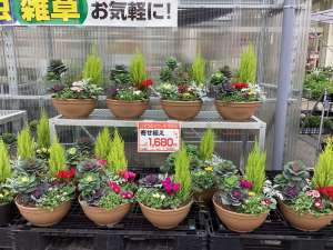 農業屋の季節の寄せ植えは、自社農場で1つ1つ手作りしています。