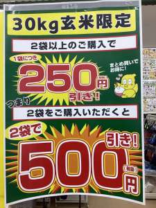 更に!30kgの玄米を2袋以上お買い上げで一袋250円引き!!