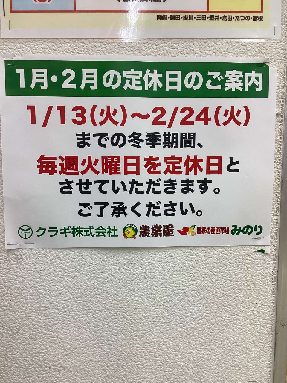 農業屋からのお知らせ