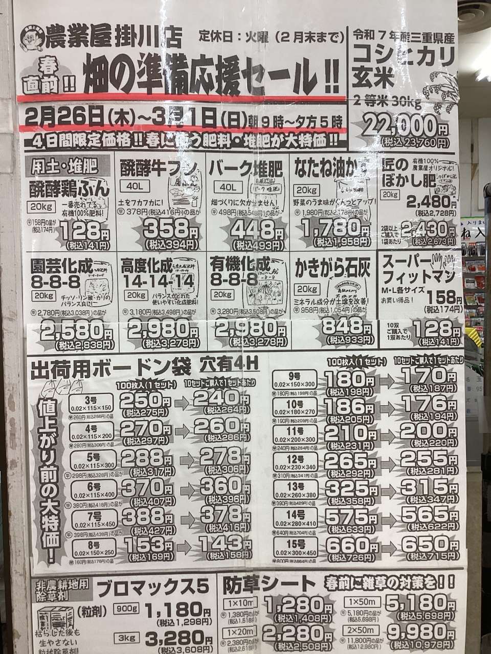種・苗と農業の専門店“農業屋” 三重,愛知,岐阜,静岡,奈良,和歌山,兵庫に店舗展開