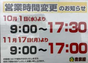 11月17日(月)より営業時間が17時までとなります。