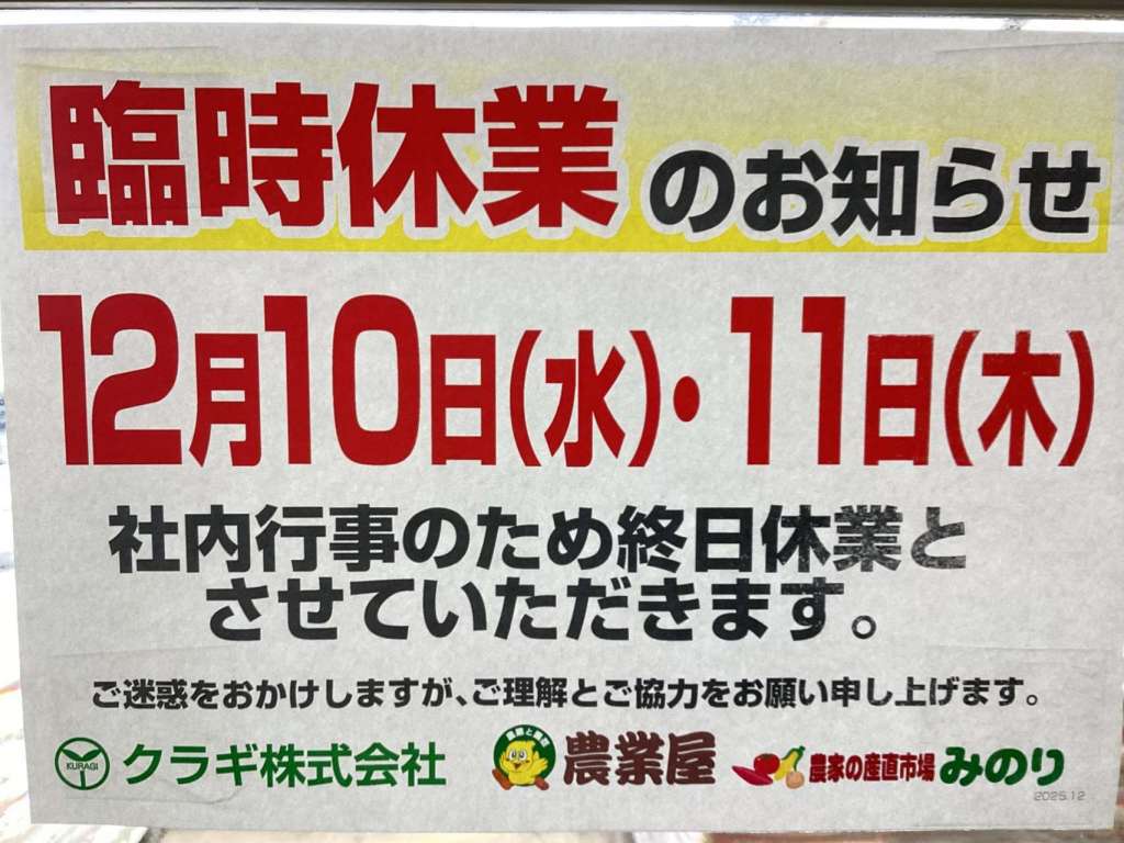12月10日(水)・11日(木)は社内行事のため終日休業とさせて頂きます。