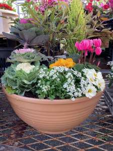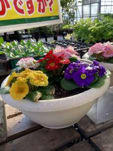 さて現在当店では寄せ植えやシクラメンなど綺麗な花が続々入荷しております