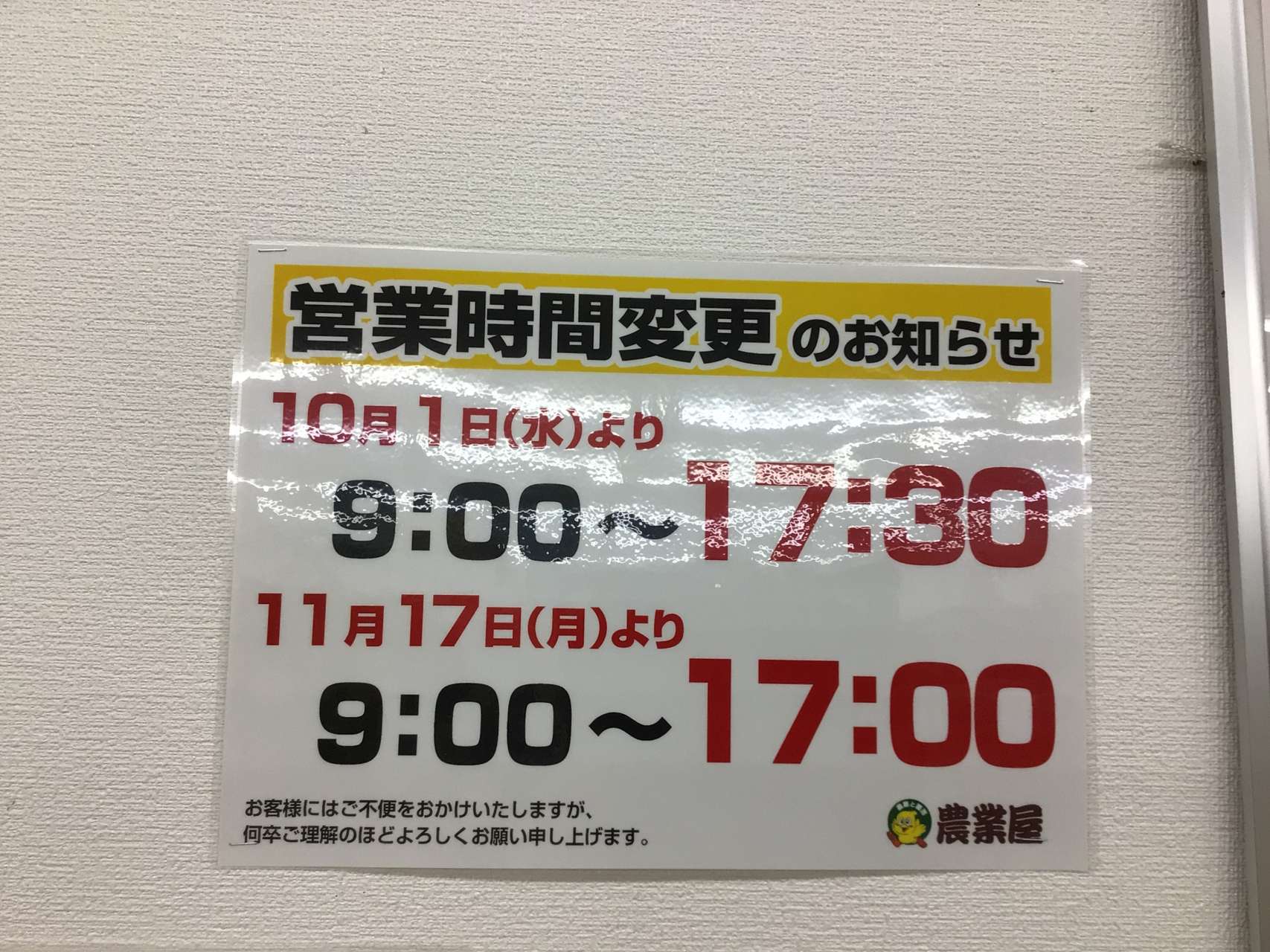農業屋からのお知らせ