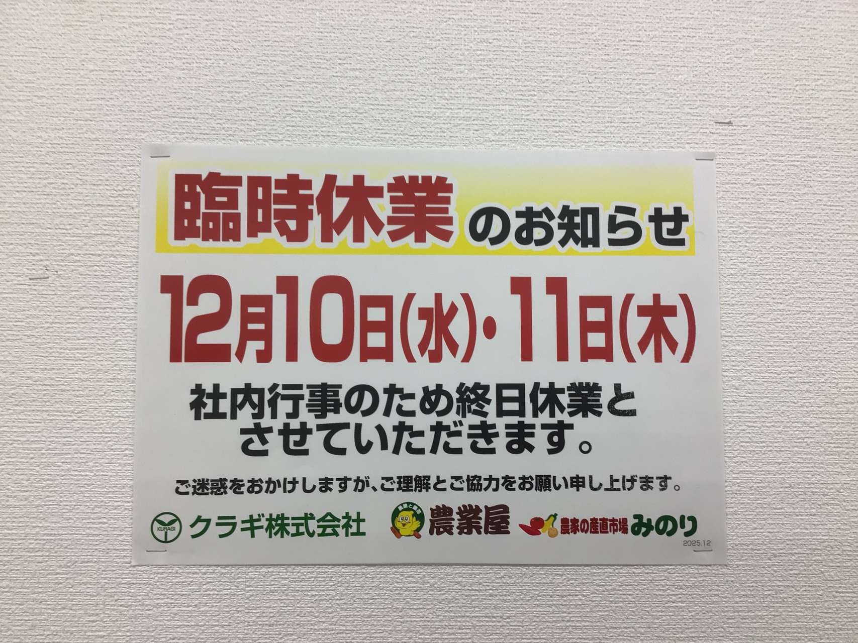 農業屋からのお知らせ