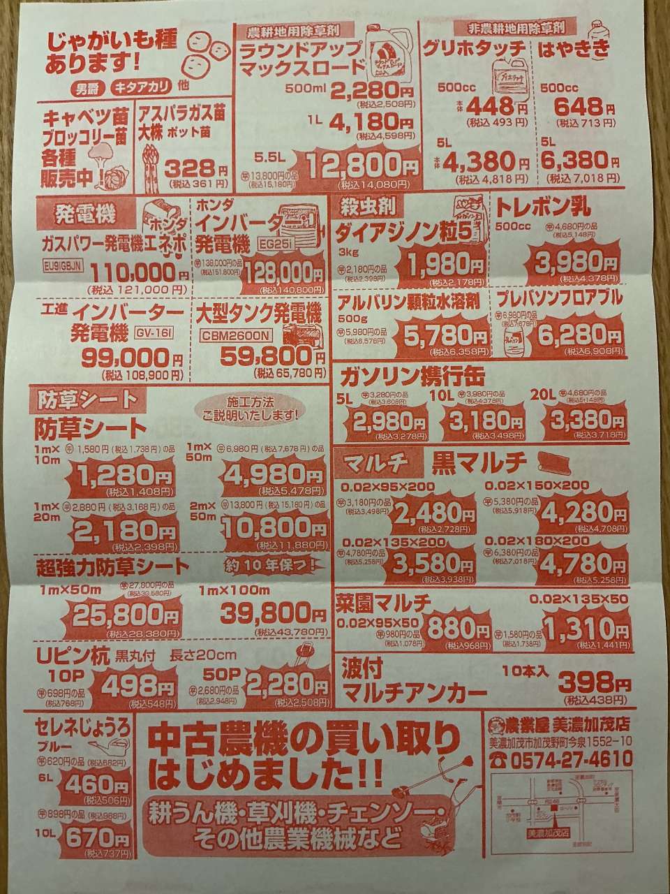 農業屋美濃加茂店 ☎️0574-27-4610