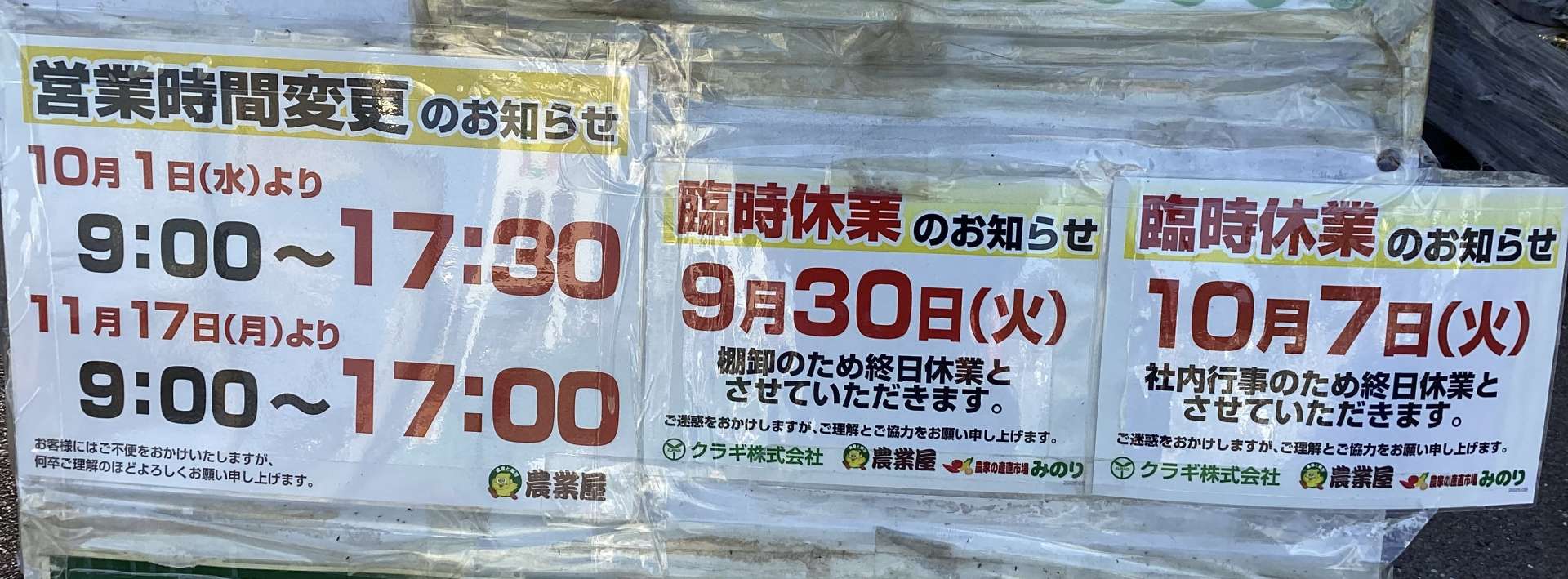 農業屋からのお知らせ