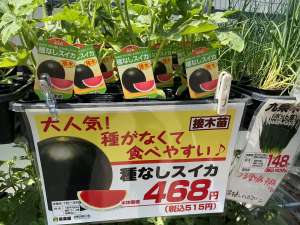 種無しスイカを実らせるには、種ありスイカの苗も必要です。