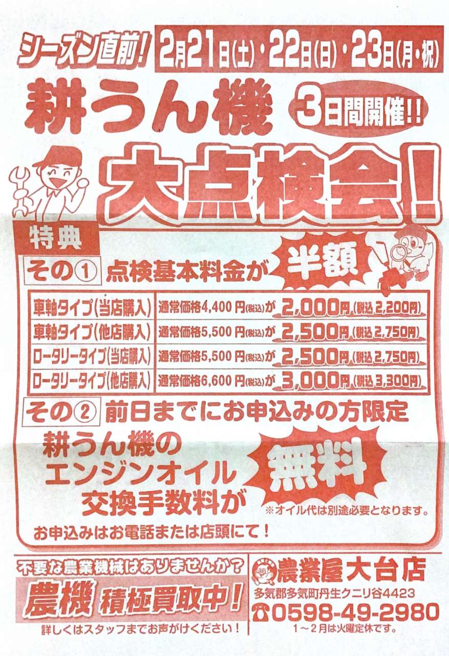 農業屋からのお知らせ