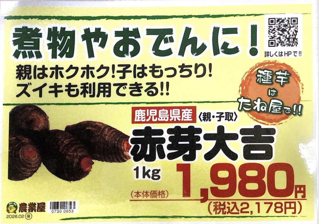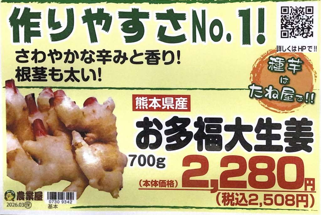 また、里芋・生姜の予約が始まっております。3月中旬から順番に入荷予定です。