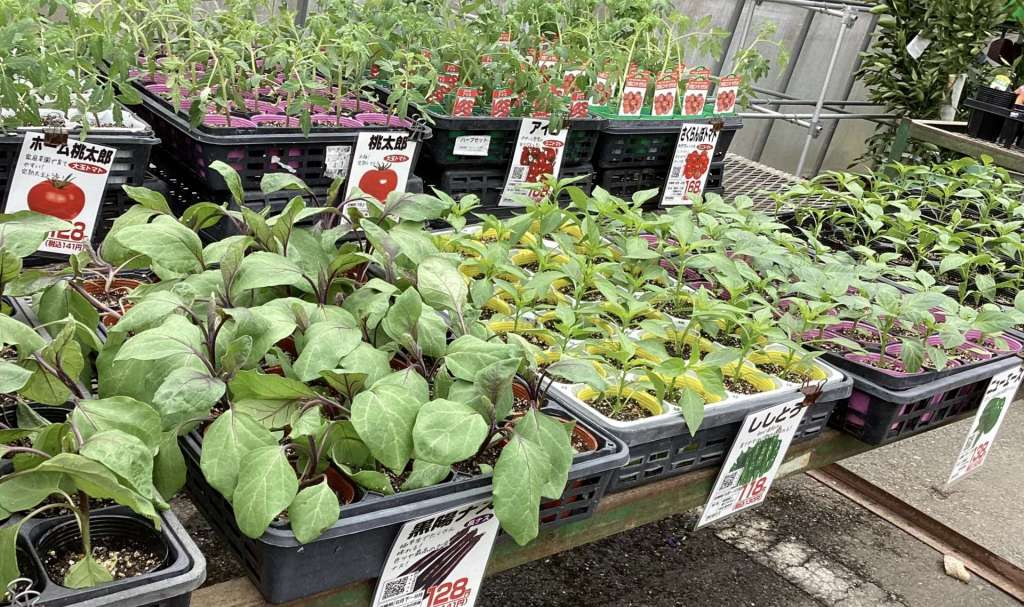 トマト、ナス、ピーマンの苗を現在販売中です。