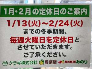 また1月13日〜1月24日までの毎週火曜日を定休日とさせていただきます!!
