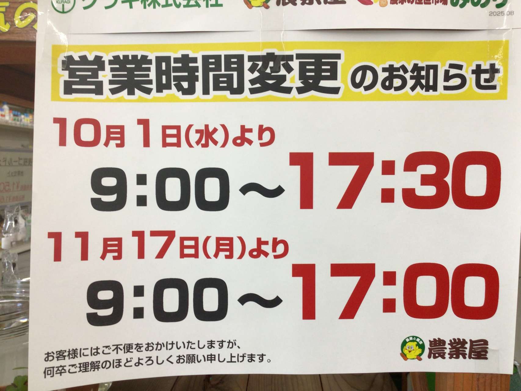 農業屋からのお知らせ